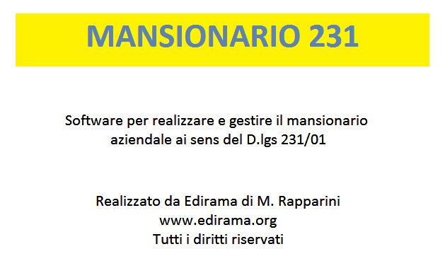 Mansionario 231 consente di realizzare e gestire il mansionario aziendale in modo rapido e completo, in funzione anche delle esigenze di tracciabilità richieste dal D.lgs 231/01